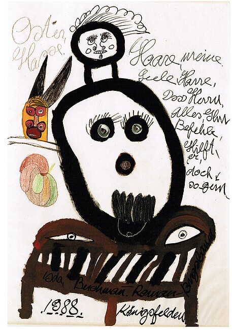 Die Psychiaterinnen und Psychiater der Zwischenkriegszeit – selbst Hans Prinzhorn – suchten in den zeichnerischen Erzeugnissen psychiatrischer Patientinnen und Patienten nach Symptomen ihrer Erkrankung. Auch in den Werken der Avantgarde erkannten sie ähnliche «Symptome» und entwickelten eine Psychopathologie der Kunst. Um 1912 verortet Sigmund Freud in mehreren anonymen Aufsätzen den psychischen Ursprung der Kunst in der Nähe des neurotischen Symptoms. Er formuliert die These der Sublimierung. Selbst C. G. Jung ordnete 1932 Picasso den Schizophrenen zu, gestützt auf seine Beobachtungen an Zeichnungen schizophrener Personen [6]. Die Ausstellung «Entartete Kunst» (Haus der Kunst, München, 1937) ist wohl die brutalste Konsequenz der Psychiatrisierung der Kunst. Die Ausstellung diente dem Ziel, zwei dem nationalsozialistischen Regime unliebsame Gruppen zu diffamieren: die künstlerische Moderne und die aus rassenhygienischen Gründen als genetischen Ballast empfundenen chronischen Psychiatrieinsassinnen und -insassen. Die Pioniere der Moderne konnten grösstenteils flüchten; die psychisch Erkrankten nicht. In den folgenden Jahren wurde im nationalsozialistischen Deutschland rund eine Viertelmillion chronischer Psychiatrieinsassinnen und -insassen ermordet.