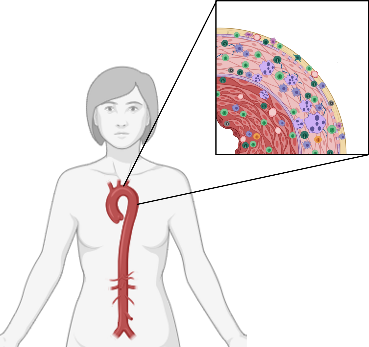 T-Zellen, natürliche Killerzellen: Sowohl bei der RZA wie auch bei der TAK spielen CD4+-T-Zellen, insbesondere INFγ-produzierende Th1- und IL-17-produzierende Th17-Zellen, eine entscheidende Rolle bei der Auslösung und Aufrechterhaltung der Gefässentzündung. Im Gegensatz zur RZA scheinen bei der TAK auch CD8+-T-Zellen und natürliche Killerzellen (NK) wesentlich zur Gefässzerstörung beizutragen. Immunhistochemische Färbungen des Gefässwandinfiltrates zeigen einen deutlich höheren Anteil an CD8+-T-Zellen und NK-Zellen bei der TAK im Vergleich zur RZA [19, 20]. Eine Erklärung für dieses unterschiedliche CD4+/CD8+-T-Zellen-Verhältnis liefert der Einfluss des Alterns auf die T-Zell-Kompartimente. Im Vergleich zu CD4+-T-Zellen kommt es bei CD8+-T-Zellen zu einem deutlich stärkeren Rückgang der relativen und absoluten Zellzahl und zu einer ausgeprägteren Expression von Alterungsmarkern mit zunehmendem Alter [21]. Ein anderer Faktor, der einen Einfluss auf die Zusammensetzung des Entzündungsinfiltrats haben könnte, liegt in den Genen. Als stärkster genetischer Risikofaktor für die Entwicklung einer RZA oder einer TAK konnten Polymorphismen in den Haupthistokompatibilitätskomplexen-I und -II (Englisch: «major histocompatibility complex» [MHC-I & MHC-II]) identifiziert werden. Über MHC-I-Proteine werden zelleigene Antigene mehrheitlich CD8+-T-Zellen und NK-Zellen präsentiert, während über MHC-II extrazelluläre, phagozytierte Antigene hauptsächlich CD4+-T-Zellen präsentiert werden [22]. Die RZA ist assoziiert mit Veränderungen in den HLA-Regionen («human leukocyte antigen») des MHC-II-Gens, während die TAK Polymorphismen im MHC-I-Gen aufweist [23]. Ein interessanter Unterschied zwischen der RZA und der TAK ist das unterschiedliche Therapieansprechen von CD4+-T-Zellen. Th17-Zellen von RZA-Patientinnen und -Patienten sprechen gut auf Glukokortikoide (GC) an, während Th1-Zellen trotz längerer Behandlung in den vaskulären Läsionen persistieren. Im Gegensatz dazu sind Th1-Zellen von TAK-Patientinnen und -Patienten empfindlich gegenüber GC, und Th17-Zellen sind steroidresistent [24, 25]. Die regulatorische T-Zelle (Treg) ist ein weiterer T-Zellsubtyp, der an der Pathogenese der RZA und der TAK beteiligt ist. Bei RZA-Patientinnen und -Patienten mit aktiver Erkrankung weisen Treg eine veränderte Expression des «Forkhead box proteins P3» (FoxP3) auf, wodurch diese ihre suppressive Funktion verlieren und durch die vermehrte Ausschüttung von IL-17 sogar krankheitsfördernd werden. Tocilizumab (TCZ), ein monoklonaler IL-6-Rezeptor-Antikörper zur Therapie der RZA, führt zu einer Normalisierung der Treg-Zellfunktion, verstärkt deren Suppressionskapazität und bewirkt eine Reduktion von IL-17 [26]. Ein spezieller Treg-Zell-Subtyp, die CD8+-Treg-Zelle, kontrolliert umliegende CD4+-T-Zellen durch die Freisetzung von enzymhaltigen Mikrovesikeln. Bei der RZA kommt es zu einer Störung des intrazellulären Transportes und der Freisetzung dieser Mikrovesikel. Diese verminderte CD4+-T-Zell-Inhibition führt zur Proliferation und Aktivierung von CD4+-T-Zellen [27]. Obwohl es Hinweise auf eine mögliche Dysfunktion der Treg-Zellen bei der TAK gibt, ist deutlich weniger über ihre Funktion und Beteiligung am Krankheitsgeschehen bekannt, und die Studienresultate sind teilweise widersprüchlich.