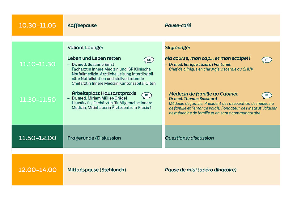 Was erwartet Sie am Laufbahnkongress medifuture vom 8. November 2025? Das Programm ist zweisprachig und bietet spannende Referate, Podiumsdiskussionen und Workshops, in denen echte Erfahrungen, Inspiration und praktische Tipps weitergegeben werden.