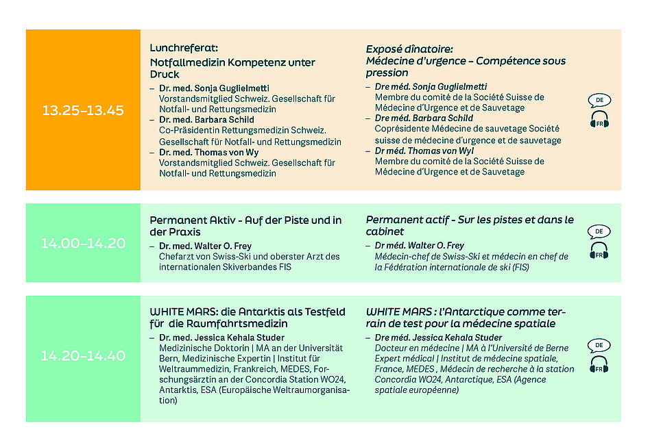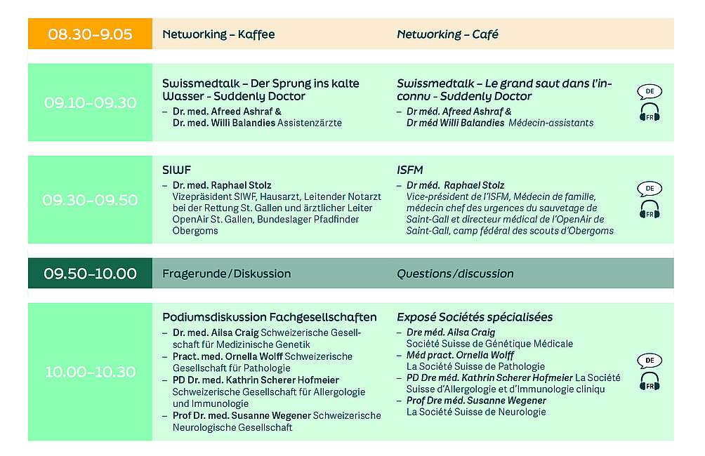 - «Wie finde ich meine Nische – Forschung, Klinik, Spezialisierung?» Diskussionen und Ausstellende eröffnen Ihnen Optionen, die Sie in Lehrplänen oft nicht sehen.