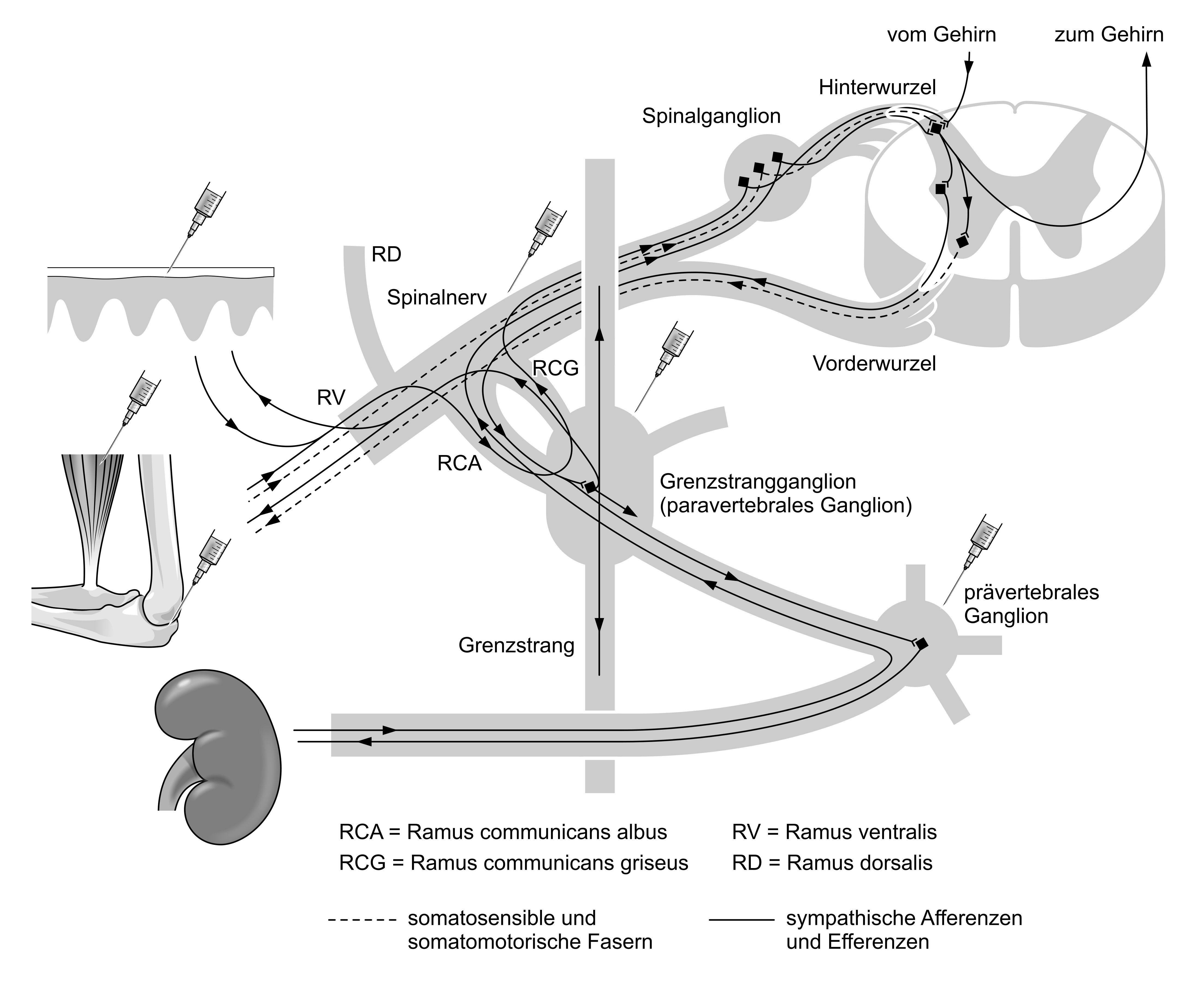 Mögliche Injektionsorte sind die Haut, myofasziale und andere Triggerpunkte, Gelenke, Sehnen, Bänder, Narben, periphere Nerven und vegetative Ganglien. Verschiedene Injektionen können individuell kombiniert werden (Abbildung).