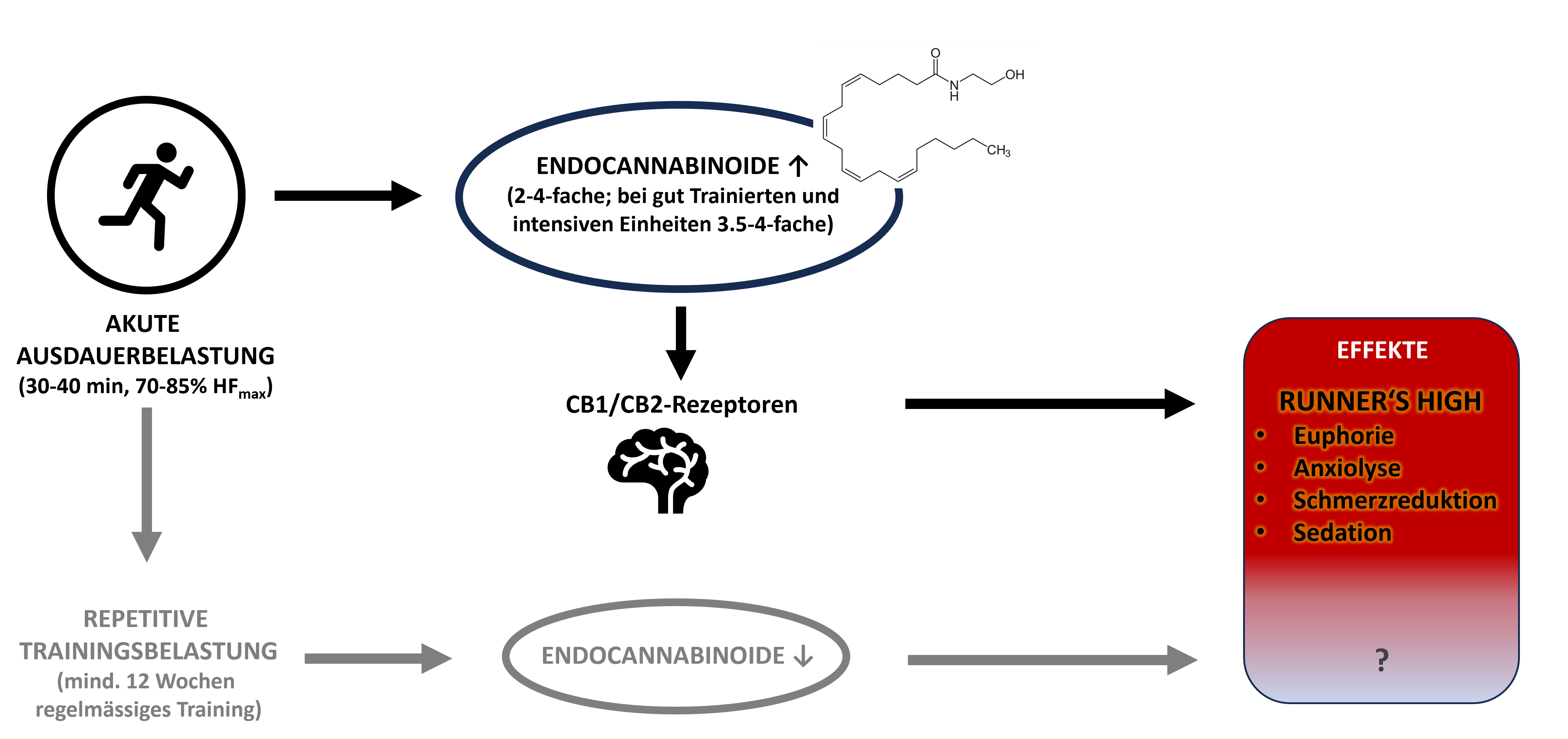 - Interindividuelle Variabilität: Verschiedene Faktoren (Genetik, Trainingszustand, Geschlecht und psychischer Zustand) modulieren die eCB-Antwort und das subjektive Erleben.
