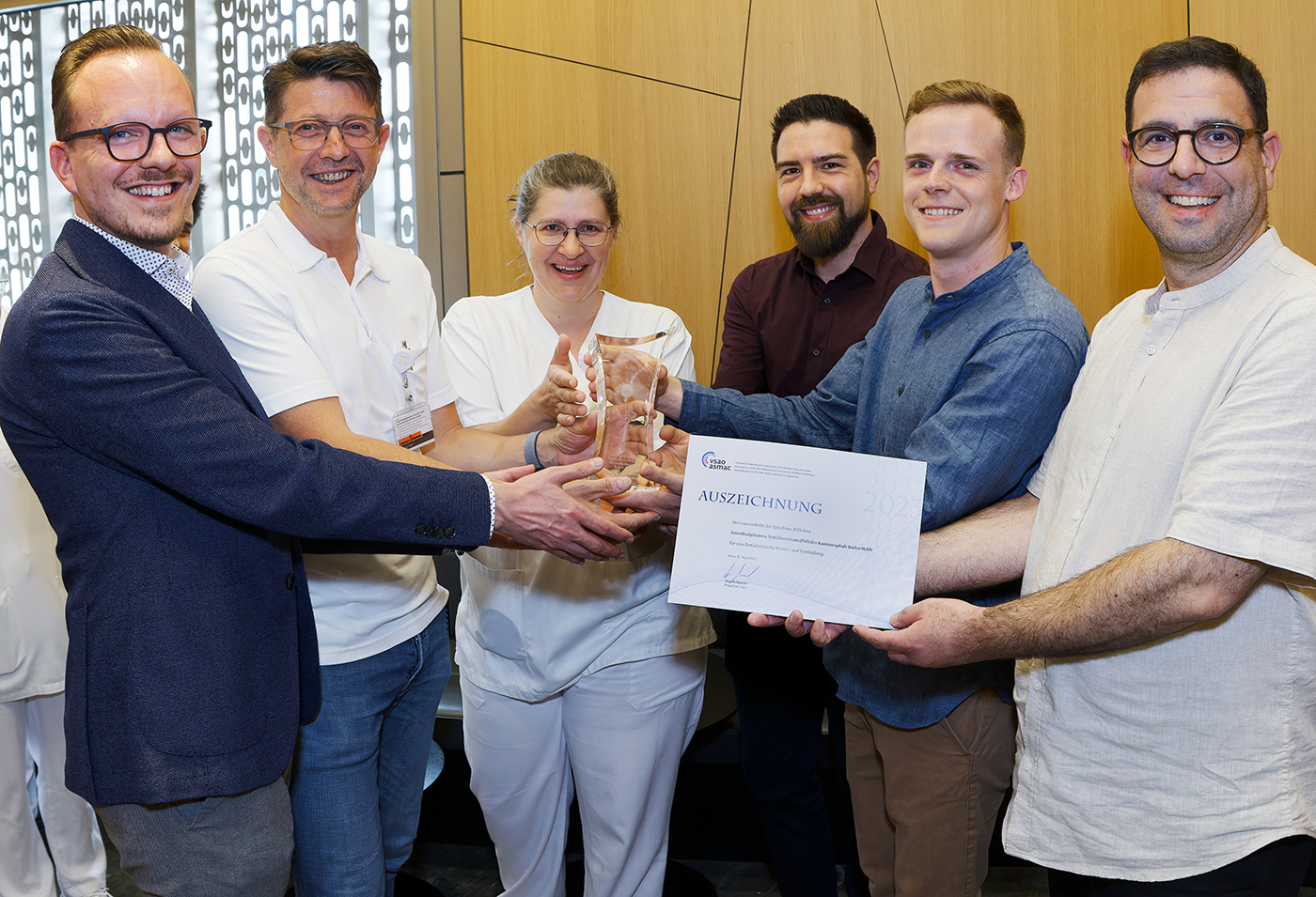 Weiterbildung in den Spitalalltag zu integrieren, ist nicht einfach. Dies zumindest lässt die letzte Umfrage unter den vsao-Mitgliedern vermuten: Nur gerade 21 Prozent der Assistenzärztinnen und -ärzte geben an, dass sie die vier Stunden strukturierte Weiterbildung pro Woche erhalten, die das Schweizerische Institut für ärztliche Weiter- und Fortbildung (SIWF) vorgibt. Auf Notfallstationen erschweren der 24-Stunden-Schichtbetrieb sowie die nicht planbaren Einsätze eine Umsetzung der SIWF-Anforderungen zusätzlich. Dass dies dennoch gelingen kann, zeigt das Beispiel des Interdisziplinären Notfallzentrums (INZ) des Kantonsspitals Baden (KSB), das seit Jahren gezielt in die Weiter- und Fortbildung investiert. Für dieses Engagement hat der vsao dem INZ die Spitalrose 2023 (siehe Kasten) verliehen.