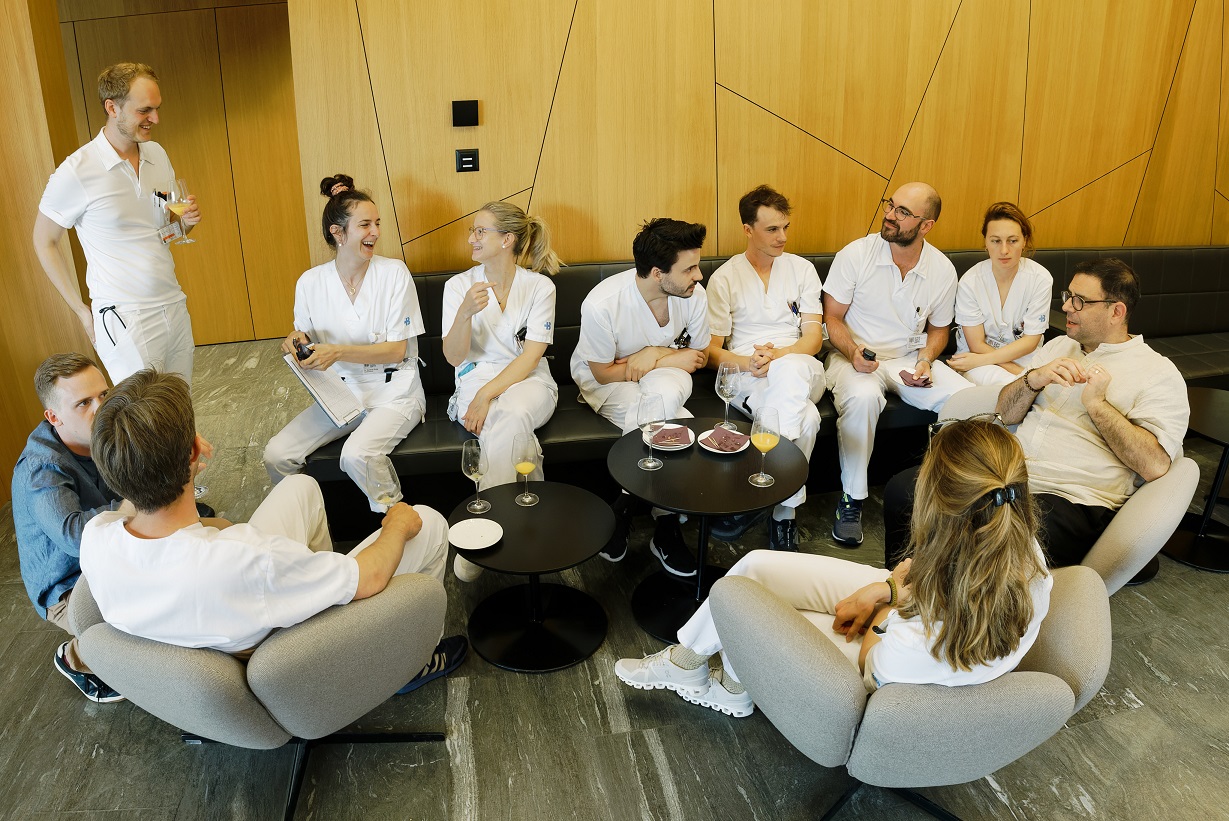 Pro Jahr kommen die Assistenzärztinnen und -ärzte so auf vier bis sechs interne Weiterbildungstage. Diese finden in kleinen Gruppen statt und sind interaktiv gestaltet. Neben den Beiträgen der Kaderärztinnen und -ärzte – deren Vertretung ist ebenfalls im Dienstplan geregelt, sodass sie ungestört weiterbilden können – müssen auch die Assistentinnen und Assistenten einen kurzen Vortrag vorbereiten. So setzen sie sich nicht nur mit medizinischen Inhalten auseinander, sondern üben auch zu präsentieren.