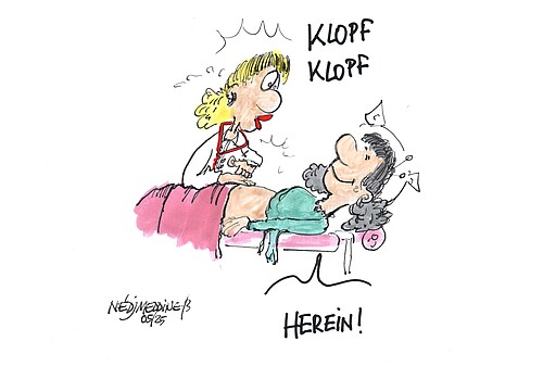 Mit gewissen Menschen kann das Perkutieren durchaus lustig sein. Cartoon: Nédjmeddine Bendimerad