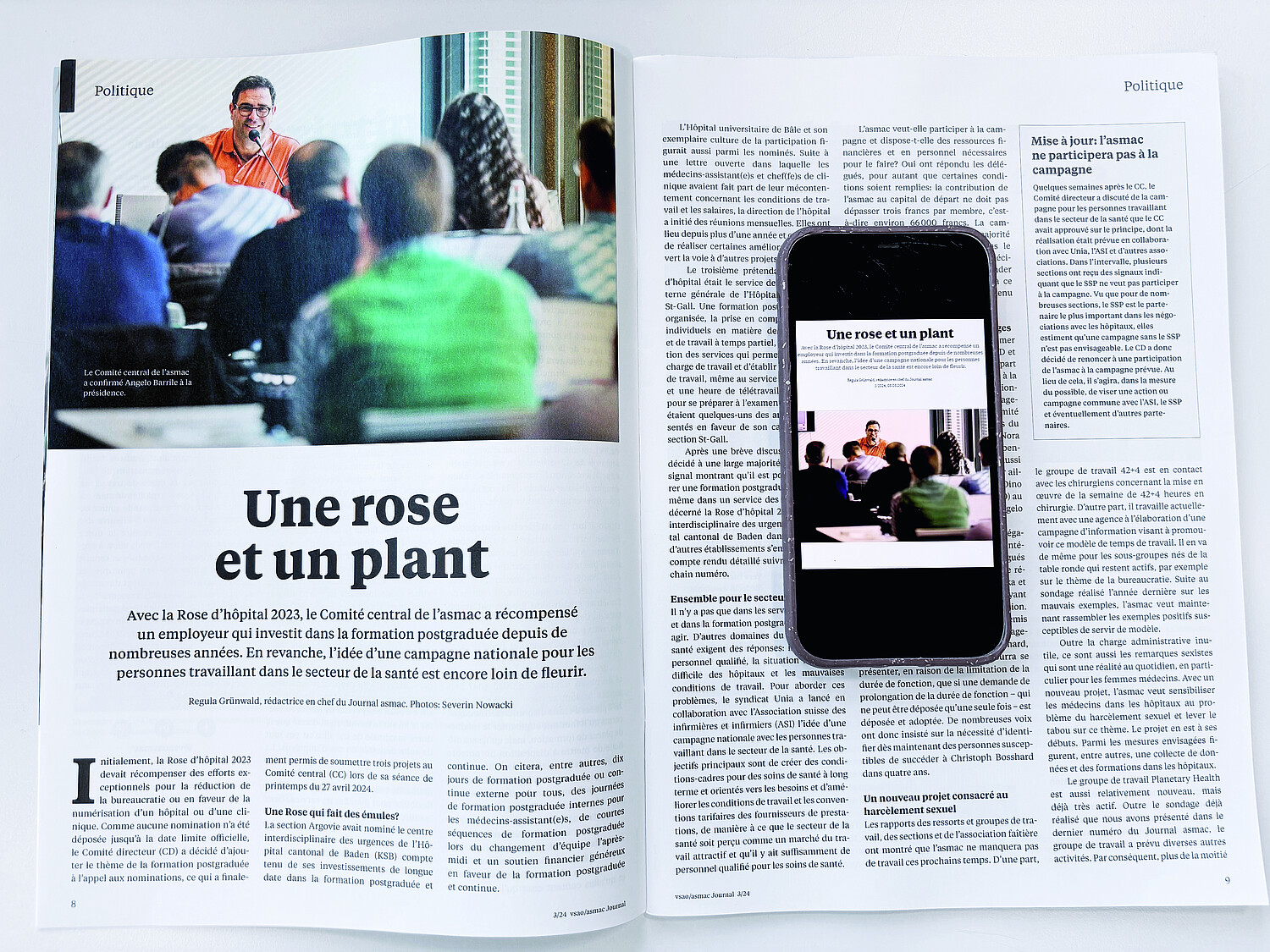 Félicitations! Vous avez découvert la toute nouvelle présentation en ligne du Journal asmac. Celui-ci peut non seulement être consulté partout et à tout moment, mais il élargit également la perspective des lectrices et lecteurs grâce à des contenus multimédias.