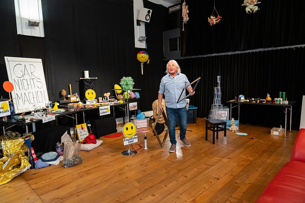 Que Pello soit en visite dans une entreprise ou qu’il reçoive des invités dans son laboratoire d’humour: il veut encourager les gens à faire une pause. Il est convaincu que nous possédons tous un interrupteur d’humour, qui nous aide à ne pas tout prendre trop au sérieux et à réagir calmement, même dans les situations difficiles. Pour l’activer, beaucoup n’ont besoin que d’une impulsion – et Pello la leur donne volontiers. Il montre l’image d’une galaxie et explique comment certains problèmes deviennent plus petits lorsqu’on s’en éloigne par la pensée. Une assiette cassée? Il crée un cadre en ruban adhésif autour des fragments de porcelaine, transformant ainsi la mésaventure en œuvre d’art. Il met des objets en équilibre, fait voler des plumes et des bulles de savon, et attend que le calme s’installe. Il fait frémir un serpent en papier qu’il a confectionné lui-même, jusqu’à ce qu’un sourire se dessine sur le visage de son interlocuteur. Il estime que toutes ces choses ne prennent pas beaucoup de temps, mais qu’elles peuvent faire une énorme différence: dans la gestion de situations désagréables, où un changement de perspective aide à prendre du recul; lors de l’établissement du rapport, où une courte pause permet d’assurer une transmission plus sereine; dans l’entretien avec les patients, où une introduction ludique contribue à créer une atmosphère agréable. «L’humour est une approche ludique de la réalité – et l’être humain n’est vraiment humain que lorsqu’il joue.»