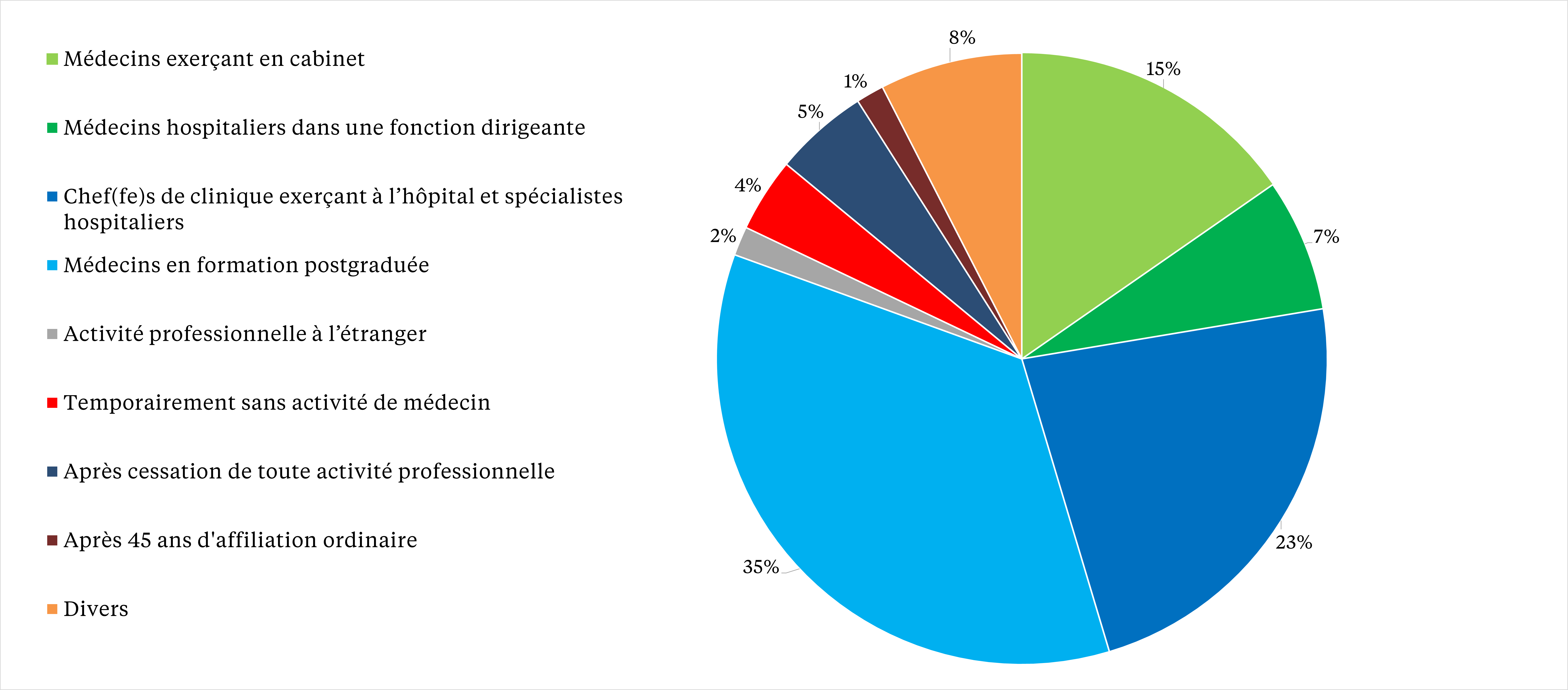 Le renouvellement de la base de données des membres est l’un des projets à venir au secrétariat central. A l’heure actuelle, les données concernant le lieu de travail et la fonction ne sont pas à jour, a expliqué Oliviero Reusser, collaborateur politique et communication. Ce qui ne l’a pas empêché de présenter quelques chiffres. Pour le degré d’organisation, c’est-à-dire la part de personnes appartenant à un certain groupe qui sont membres de l’association qui défend leurs intérêts, l’asmac atteint chez les médecins-assistant(e)s une valeur de 55%, chez les chef(fe)s de clinique de 56%. Avec environ 35%, les médecins-assistant(e)s forment le principal groupe de membres de l’asmac. Environ 23% travaillent comme chef(fe)s de clinique. On trouve cependant parmi les membres de l’asmac également des médecins exerçant en cabinet, des médecins dans une fonction dirigeante et des médecins retraités ou dont la fonction n’est pas connue. «Même si nous invitons au moins une fois par année nos membres à nous communiquer les changements, cela ne signifie pas que nous recevons ensuite une fois par année une réponse de chaque membre», a précisé Simon Stettler. L’asmac examine donc les options sur la manière de rendre la mise à jour des données plus simple pour les membres et de simplifier l’échange de données avec la FMH. «Nous exploitons toujours des systèmes séparés. L’idéal serait cependant que les membres ne doivent saisir qu’une seule fois leurs données et changements.»