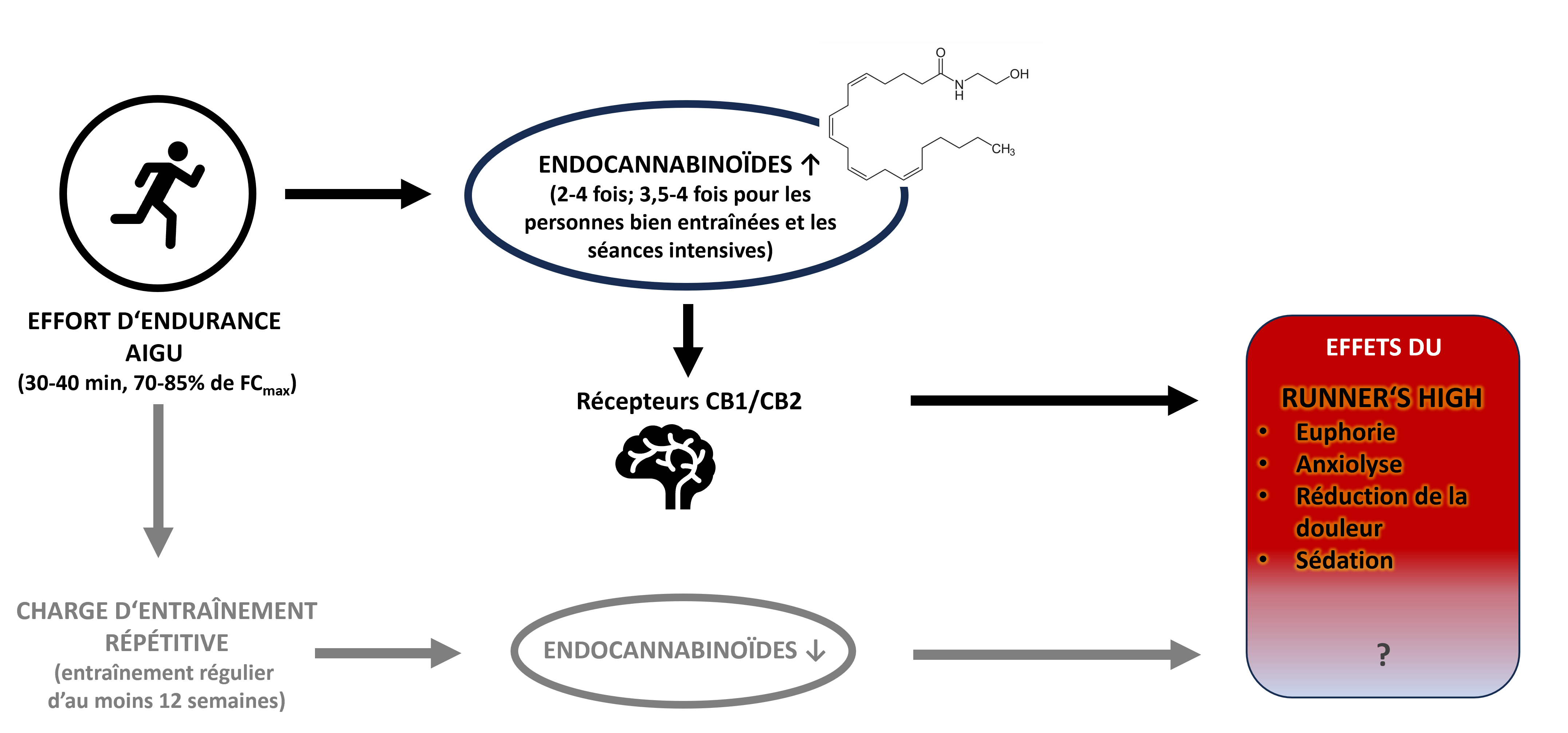 - Variabilité interindividuelle: différents facteurs (génétique, état d’entraînement, sexe et état psychologique) modulent la réponse de l’eCB et l’expérience subjective.