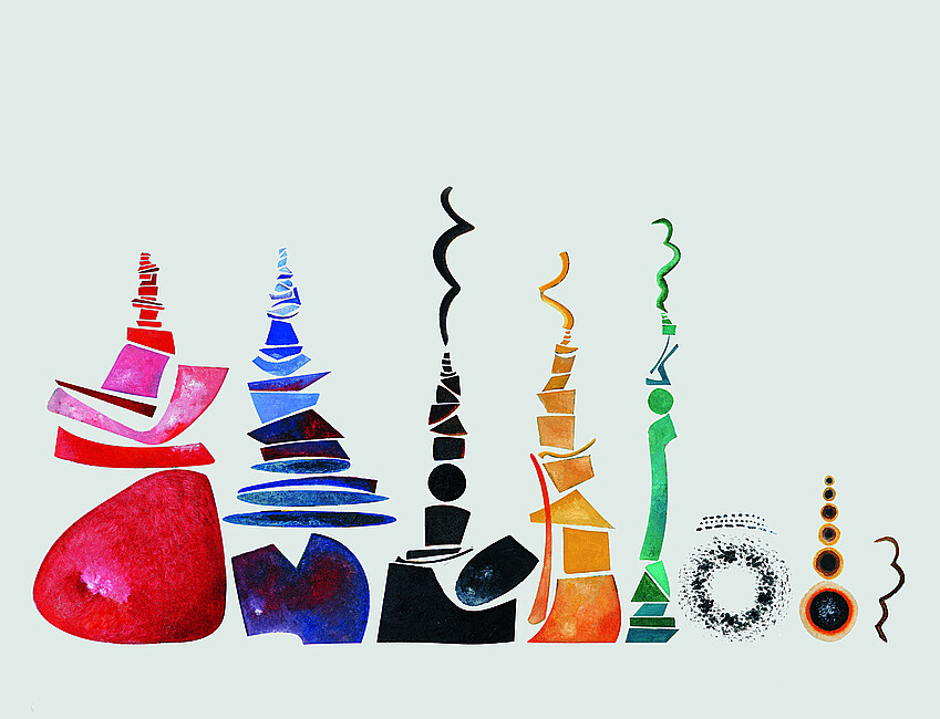 C’est très intuitif, tant dans le choix que dans le processus. Pour les tableaux, le côté tactile est essentiel: je déplace les éléments découpés jusqu’à ce que ça fasse un déclic. Parfois, c’est rapide, mais il y a aussi des tableaux pour lesquels je ne trouve jamais la bonne organisation ou alors seulement six mois plus tard. Il arrive aussi que je doive m’éloigner de la simple logique graphique et pousser l'abstraction plus loin. Par exemple, j'ai créé une tasse et un lapin sur base de la tasse en fourrure de Meret Oppenheim. Je n’avais pas prévu de faire durer ce projet si longtemps, mais le thème reste inépuisable. Après les scènes du quotidien, comme la soupe de lettres ou la pelouse de la piscine, j’ai compris que je pouvais aller encore plus loin, et donner un sens à des situations très complexes. Les images du livre «Welt aufräumen» racontent de vraies histoires, il faut réfléchir à plusieurs niveaux.