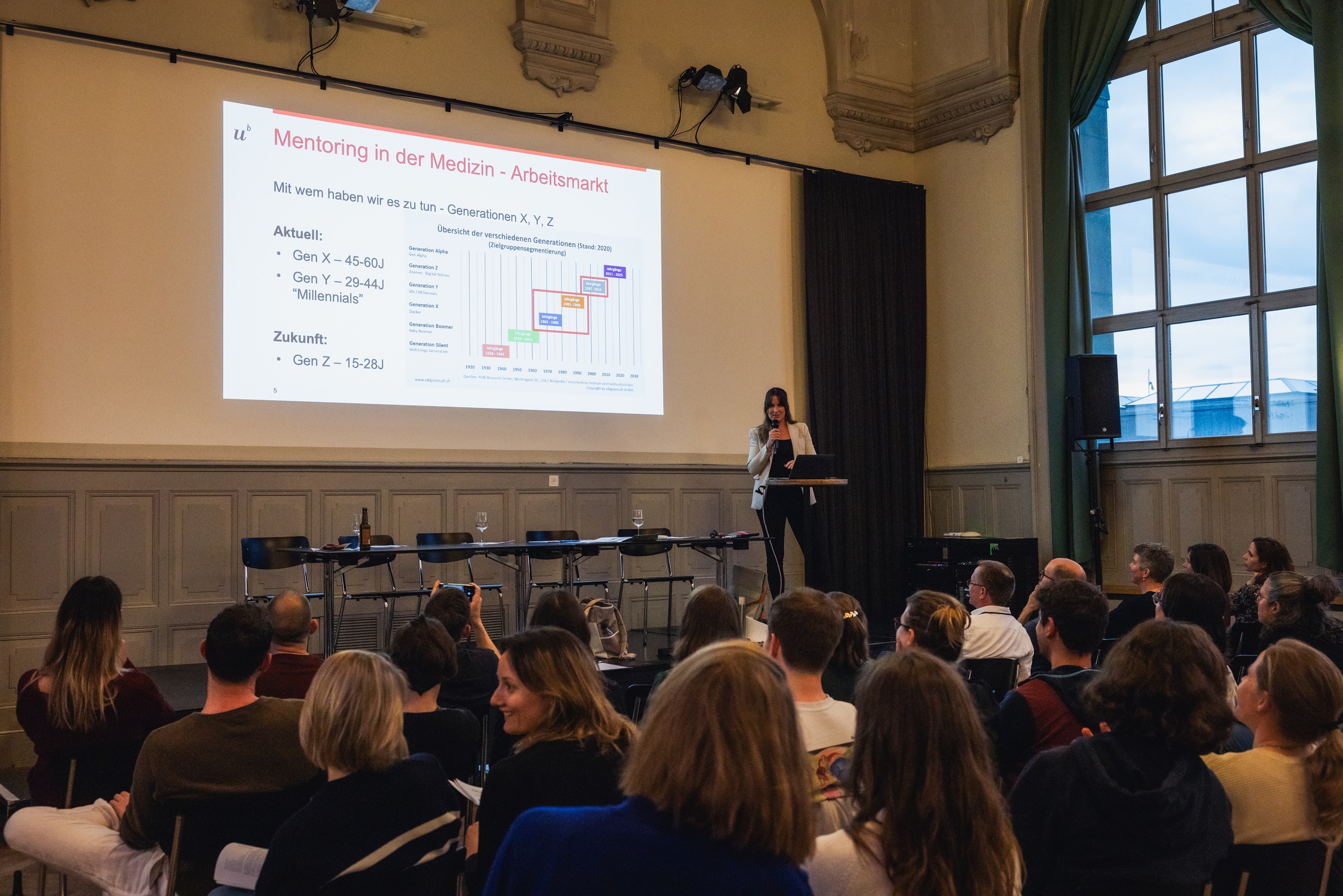 La lauréate de la bourse ASMAC Berne, la PD Dre méd. Sonja Häckel, a présenté son projet de recherche «Medimile». L’application de mentorat réunit efficacement les mentors et les mentees. La présentation a été suivie du repas du soir, puis de la tombola!